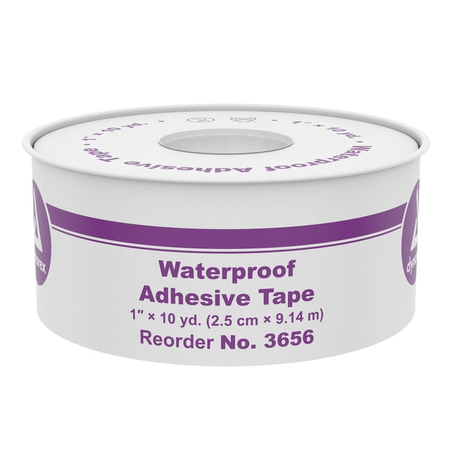 Dynarex DynaSafety Waterproof Adhesive Tape is a high-quality tape designed to help keep wounds and dressings dry and protected from outside moisture. This Waterproof Adhesive Tape is encased in a plastic spool for convenient measuring, cutting, and application. The Tape is constructed with strong adhesive materials to firmly hold dressings in place for added security. The laminated cloth tears evenly, allowing for quick and easy sizing for a secure, custom fit. Dynarex Waterproof Adhesive Tape is ideal for first aid kits, sports, outdoor activities, and home use. Dynarex DynaSafety Waterproof Adhesive Tape is designed to effectively protect wounds from external moisture. The Tape features a strong adhesive for a secure hold and a spooled design for added convenience.