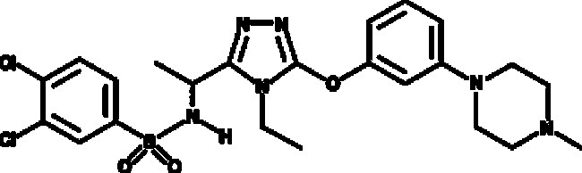 An S1P1 antagonist (IC50 = 4.2 nM); selective for S1P1 over S1P3, S1P4, and S1P5 (IC50s = >10,000, >10,000, and 8,756 nM, respectively); inhibits S1P-induced [35S]GTPγS binding and forskolin-induced cAMP production in HEK293 cells expressing human S1P1 (IC50s = 7.8 and 4.3 nM, respectively); inhibits S1P-induced migration of CHO cells expressing human S1P1 (IC50 = 18 nM); induces lymphopenia in mice at 100 mg/kg; reduces bone erosion in a mouse model of collagen-induced arthritis; intrathecal administration reduces flinching and guarding behaviors in a mouse model of cancer-induced bone pain at 3 or 10 nmol/animal