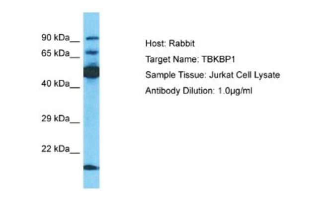 | The immunogen is a synthetic peptide directed towards the C-terminal region of Human TBKBP1 | |