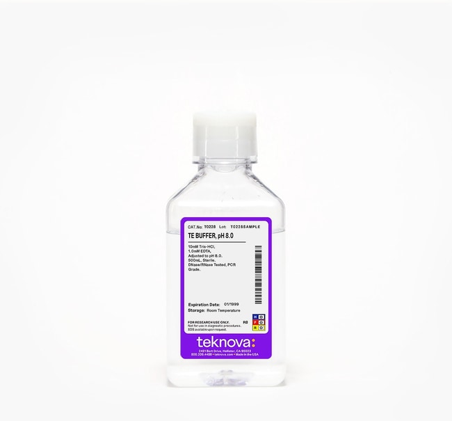 Teknova TE Buffer (10mM Tris, 1mM EDTA), pH 8.0 Solution, 500mL. DNase/RNase Tested, PCR Grade.