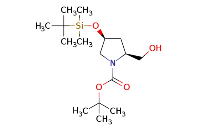 eMolecules Pharmablock / tert-butyl (2S4S)-4-[tert-butyl(dimethyl)silyl]oxy-2-(hydroxymethyl)pyrrolidine-1-carboxylate / 25mg / 696794599 / PB98139 / 0.000 / 791602-93-2 / [null] / 331.528 / C16H33NO4Si