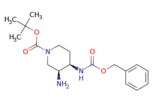 eMolecules Pharmablock / tert-butyl (3S4R)-3-amino-4-[(benzyloxy)carbonyl]aminopiperidine-1-carboxylate / 25mg / 551309697 / PBZ4891 / 0.000 / 1707290-23-0 / MFCD28501308 / 349.431 / C18H27N3O4