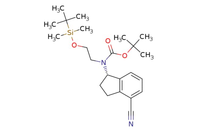Pharmablock | tert-butyl N-[2-[tert-butyl(dimethyl)silyl]oxyethyl]-N-[(1S)-4-cyanoindan-1-yl]carbamate | 1g | 551096615 | PB94996 | | 1306763-61-0 | | 416.637 | C23H36N2O3Si