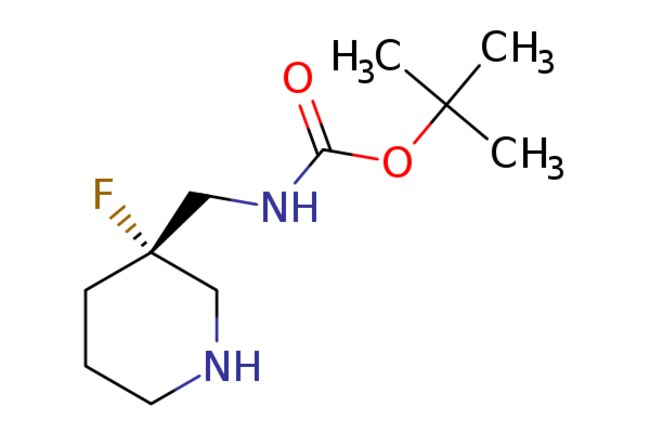 Pharmablock / tert-butyl N-[[(3S)-3-fluoro-3-piperidyl]methyl]carbamate / 25mg / 551093877 / PB92585 / 0.000 / 2306249-89-6 / [null] / 232.299 / C11H21FN2O2