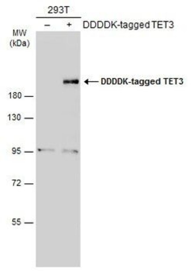 Recommended positive controls: Flag-human TET3 transfected 293T. Predicted reactivity: Mouse (94%). Store product as a concentrated solution. Centrifuge briefly prior to opening the vial.