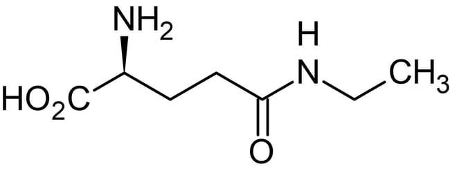 MW 174.2 Da. Amino acid analog of glutamine, commonly found in green tea. Binds to AMPA, kainate, NMDA and group I mGlu receptors. Displays neuroprotective and cognitive enhancing effects. Also shown to modify self-renewal properties of cancer stem cells. Blood-brain barrier permeable and active in vivo.