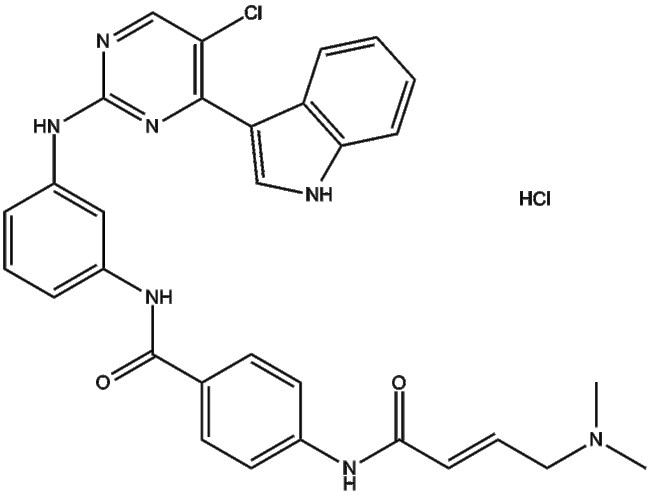 THZ1 Hydrochloride is a covalent inhibitor targeting the cyclin-dependent kinase CDK7 with an IC50 of approximately 3 2 nM Mechanistically THZ1 modifies CDK7 by covalently binding to a cysteine residue located outside the kinase domain thereby inhibiting kinase-mediated phosphorylation events associated with the RNA Polymerase II C-terminal domain (CTD) It perturbs transcriptional regulation pathways mediated by CDK7-related signaling in cells including inhibition of phosphorylation essential for initiation and elongation processes THZ1 has demonstrated inhibitory activity in various cancer cell lines particularly in T-cell acute lymphoblastic leukemia (T-ALL) cell lines such as Jurkat and Loucy where sensitivity correlates with interference of RUNX1 transcriptional programs THZ1 is primarily used as a pharmacological tool to investigate CDK7-driven transcriptional regulation and tumor biology