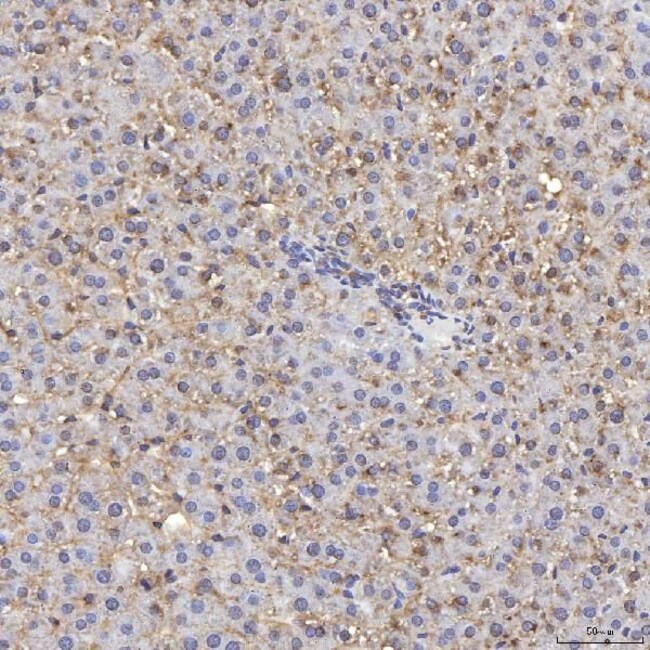Adding 0.2 mL of distilled water will yield a concentration of 500 μg/mL. Positive Control - WB: mouse liver tissue, mouse kidney tissue. IHC: mouse liver tissue, rat liver tissue. Flow: HEPA1-6 cell. Store at -20°C for one year from date of receipt. After reconstitution, at 4°C for one month. It can also be aliquotted and stored frozen at -20°C for six months. Avoid repeated freeze-thaw cycles.