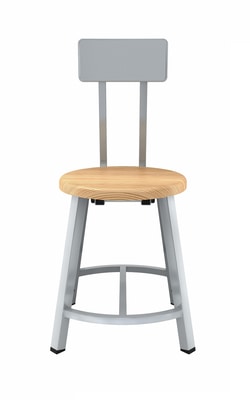 National Public Seating Titan Stool with Backrest, Wood Seat, gray Frame