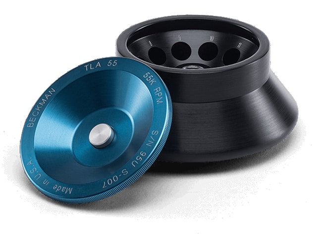 The TLA-55 Fixed-Angle Rotor Package is an aluminum fixed-angle rotor designed for high-speed ultracentrifugation applications, including rapid pelleting of nucleic acid precipitates from 1.5 mL tubes. It supports high rotational speeds and is intended for use with compatible benchtop and personal ultracentrifuges.
