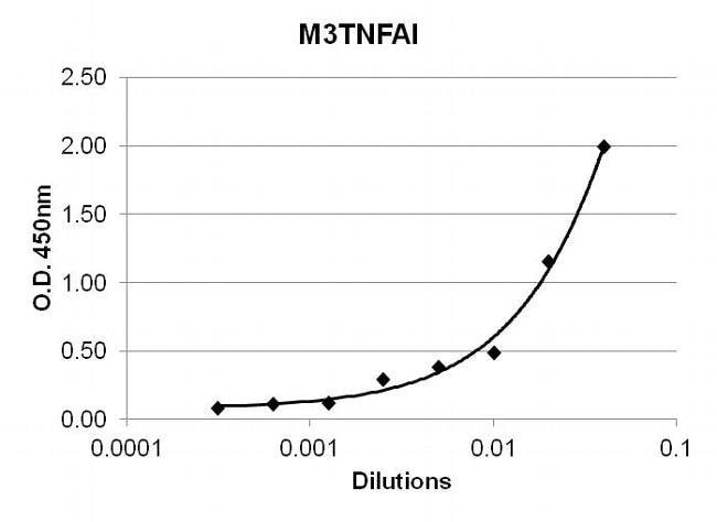 M3TNFAI targets TNF Alpha in ELISA, and WB applications and shows reactivity with Canine, Feline, Human, Non-human primate, and Porcine samples. The M3TNFAI immunogen is recombinant human TNF alpha from Pichia pastoris. M3TNFAI detects TNF Alpha which has a predicted molecular weight of approximately 26 kDa. Endotoxin levels are less than or equal to 10 μg/mL.