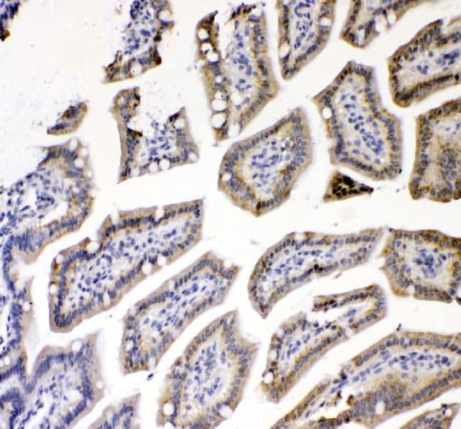 Reconstitute with 0.2 mL of distilled water to yield a concentration of 500 μg/mL. Positive Control - WB: human Hela whole cell, human A549 whole cell, rat brain tissue, rat lung tissue, mouse brain tissue, mouse lung tissue. IHC: mouse colon tissue, mouse kidney tissue. Store at -20°C for one year from date of receipt. After reconstitution, at 4°C for one month. It can also be aliquotted and stored frozen at -20°C for six months. Avoid repeated freeze-thaw cycles.