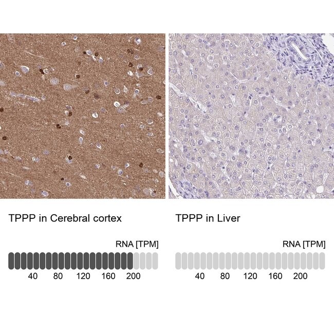 Tubulin family members are globular proteins important in the assembly of microtubules. Microtubules are structural components that play important roles in mitosis, cytokinesis and vesicle transport. TPPP (Tubulin polymerization-promoting protein), also known as p24 and p25, is a widely expressed 219 amino acid protein found in the perinuclear region of the cytoplasm. TPPP may form dimers and functions in polymerizing tubulin into double-walled tubules, polymorphic aggregates, or stabilized blocks. TPPP overexpression prevents formation of the mitotic spindle assembly and breakdown of the nuclear envelope. TPPP is phosphorylated by TPK II and is encoded by a gene that maps to human chromosome 5, which contains 181 million base pairs and comprises nearly 6% of the human genome. May play a role in the polymerization of tubulin into microtubules, microtubule bundling and the stabilization of existing microtubules, thus maintaining the integrity of the microtubule network. May play a role in mitotic spindle assembly and nuclear envelope breakdown.