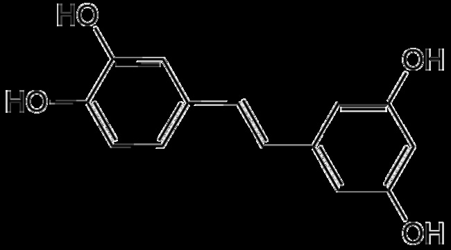 Chemical. CAS: 10083-24-6. Formula: C14H12O4. MW: 244.24. Piceatannol is a resveratrol analog with anticancer, anti-inflammatory, antioxidant, neuroprotective and cardioprotective properties. It is a spleen tyrosine kinase (Syk) inhibitor, however it exhibits antiproliferative activity by inhibiting a wide range of tyrosine and serine/threonine protein kinases, including Syk, p56lck, PKA, PKC, MLCK, CDPK, JNK and PI3K. It suppresses NF-kappa activation through inhibition of IkappaBalpha kinase and NLRP3 activation. It is an apoptosis and autophagy inducer, cell cycle inhibitor, activator of SIRT1 and also inhibits adipogenesis.