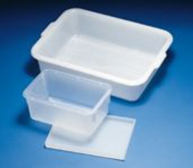 Polypropylene covers are 3.2 mm (1/8 inch) thick with a 25.4mm (1 inch) skirt that fits snugly over the rim of the tray. Trays and lids are steam autoclavable at 121°C (250°F).