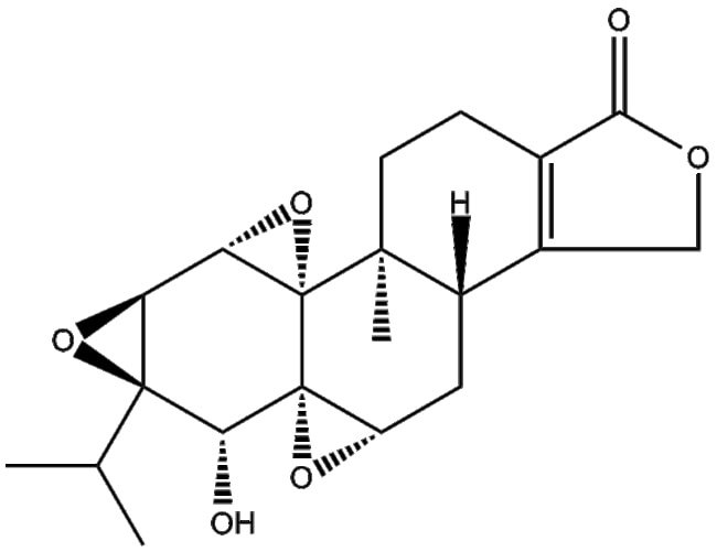 Triptolide (CAS 38748-32-2) is a biologically active diterpenoid originally isolated from the traditional Chinese herb Tripterygium wilfordii It exerts inhibitory effects by suppressing interleukin-2 expression in activated T cells and impeding NF- B-mediated transcriptional activation Triptolide inhibits invasion and migration of ovarian cancer cells via reducing matrix metalloproteinases MMP-7 and MMP-19 expression and enhancing E-cadherin expression Additionally it induces RNA polymerase II degradation leading to apoptosis and reduced proliferation in cancer cell lines and rheumatoid arthritis synovial fibroblasts Consequently triptolide serves as a valuable tool for immunology oncology and inflammation research