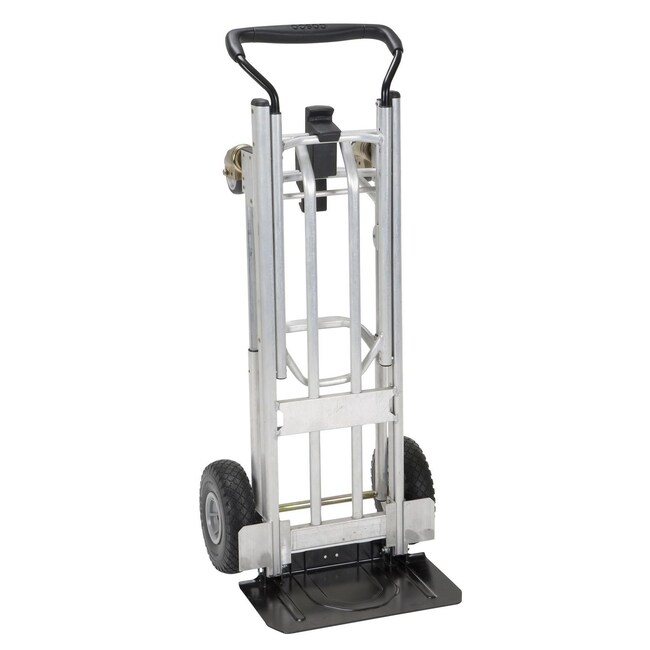 Whether you re moving painting redecorating or stocking up on what you need let this multi-functional truck do all your heavy lifting Heavy Duty 4-in-1 Truck s ergonomic design makes it ideal for just about anyone either at home or at work Requiring no tools no pins no kidding it easily converts between a two-wheel hand truck an assisted four-wheel hand truck a four-wheel cart and a four-wheel platform truck keeping you covered no matter the task at hand When configured as a platform truck or cart a very convenient folding toe plate can either keep smaller loads more secure or fold back to accommodate longer items and larger loads ensuring easy transport no matter what you need to move Commercial-grade aluminum and steel construction ensures strong and stable performance in any configuration and its relatively lightweight design looped handle flat-free wheels and swivel casters make it easy to maneuver Choose this handy truck and let nothing get left behind Color(s)