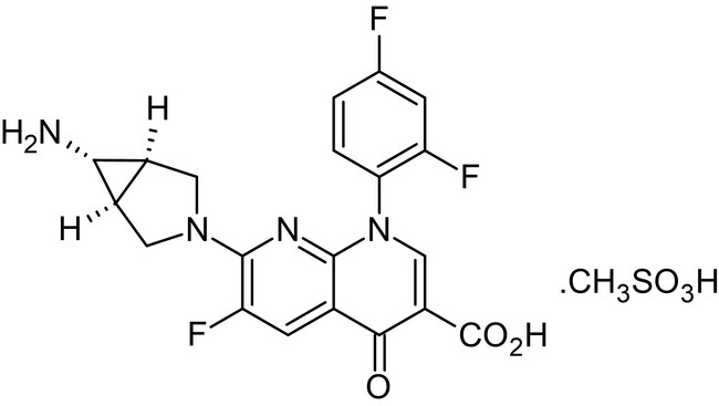 MW 512.46 g/mol, Purity >98%. Fluoroquinolone antibiotic agent. Topoisomerase IV and DNA gyrase inhibitor. Reversibly inhibits DNA synthesis. Inhibits PANX1 (IC₅₀ = 4 μM). Shows antibiotic effects in vivo (MIC₉₀ = 244 nM, pneumococci).