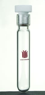 185mL pressure tube with #15 Ace-Thred, rated for 150psig at as much as 120C. Includes #15 front-seal plunger valve. Dimensions: 38.1mm O.D. x 30.5cm long.