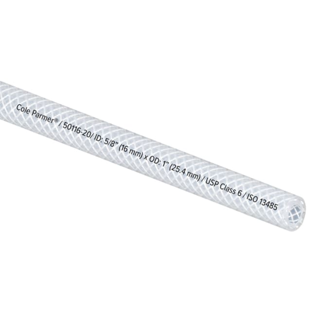 The Cole-Parmer Reinforced Thermoplastic Vulcanizate (TPV) tubing is soft and flexible tubing that is durable enough to provide a long service life. This tubing is designed for use with peristaltic pumps. This TPE tubing does not contain PVC, DEHP, phthalates, or plasticizers, making them ideal for various pharmaceutical, medical, food, and beverage applications. The reinforced tubing design makes it ideal for demanding, high pressure use.