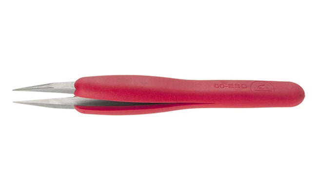 Electron Microscopy Sciences Dumont Ergonomic ESD Tweezers Style 00, Red Handle, 115 mm OAL, 0.45 mm Tip width