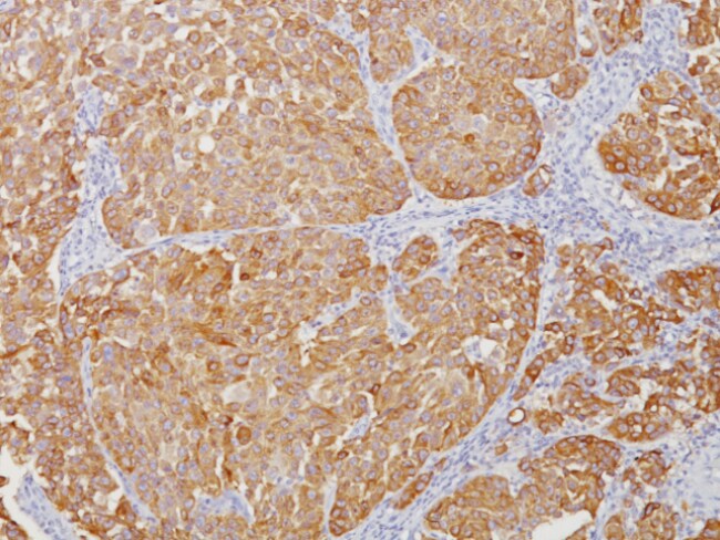 Tyrosinase is a key enzyme involved in the initial stages of melanin biosynthesis. Studies have shown Tyrosinase antibody to be a more sensitive marker for melanoma when compared to HMB45 and MART-1. It has also shown to label a higher percentage of desmoplastic melanomas than HMB45. Unlike HMB45, Tyrosinase does not discriminate between activated or resting melanocytes. Other studies have shown Tyrosinase to be a very specific marker for melanomas that did not cross react with any tumors or normal tissues tested. Tyrosinase is reported to be a superior melanoma marker when compared to HMB45.