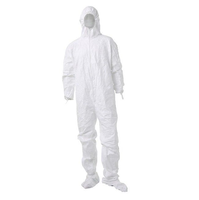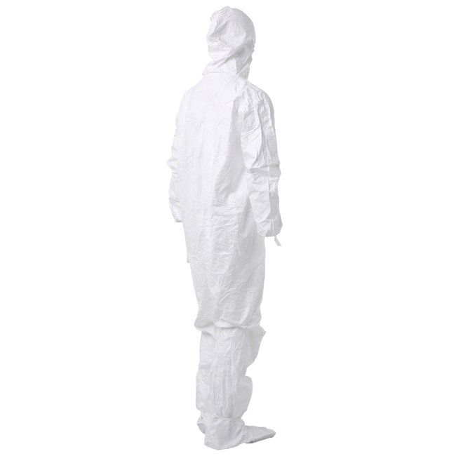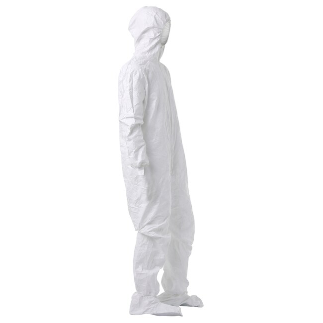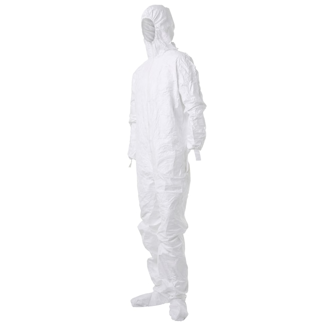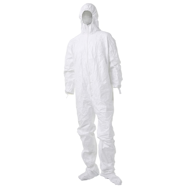 - Coverall has elastic openings for tighter fit at wrist and ankle.