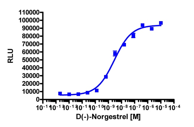 The PathHunter PRα Protein Interaction cell line is a stable, engineered cell line for use in studying drug candidates (small molecules or biologics) affecting NHR activation and recruitment of cofactors. This cell line enables assessment of ligand (e.g. testosterone, norgestrel) based NHR activation via detection of SRCP (steroid receptor co-activator peptide) recruitment. The included cell line overexpresses ProLink-tagged PRα (progesterone receptor alpha) NHR and EA-tagged steroid receptor co-activator peptide (SRCP). Upon activation of PRα, induced interaction with SRCP leads to production of EFC signal. This stable modified cell line is provided as two vials of cryopreserved cells. For detailed product information, User Manual and datasheet, visit www.discoverx.com/nhr.