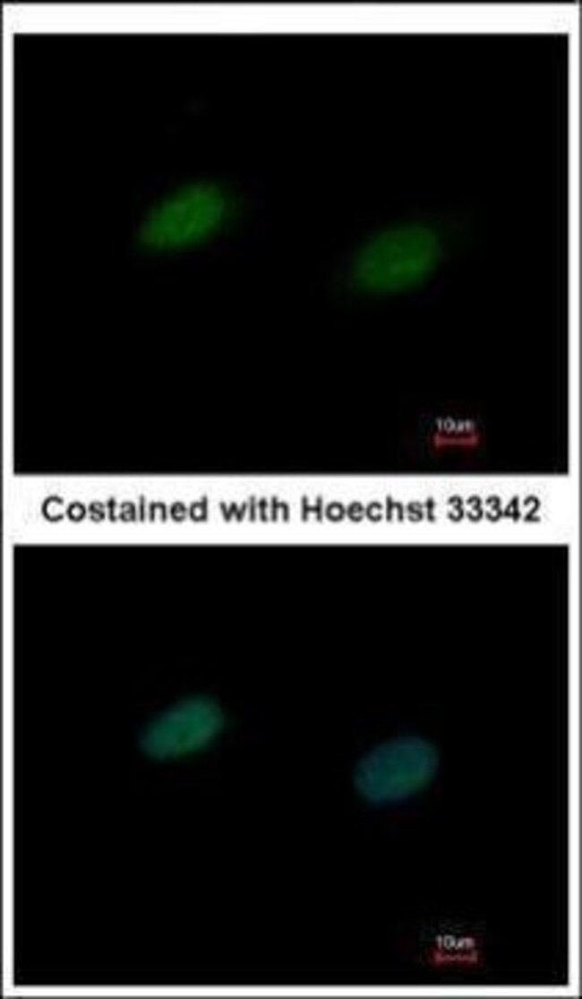 Recommended positive controls: HeLa. Predicted reactivity: Mouse (96%), Rat (96%), Zebrafish (90%), Xenopus laevis (89%), Chicken (96%), Bovine (100%). Store product as a concentrated solution. Centrifuge briefly prior to opening the vial.