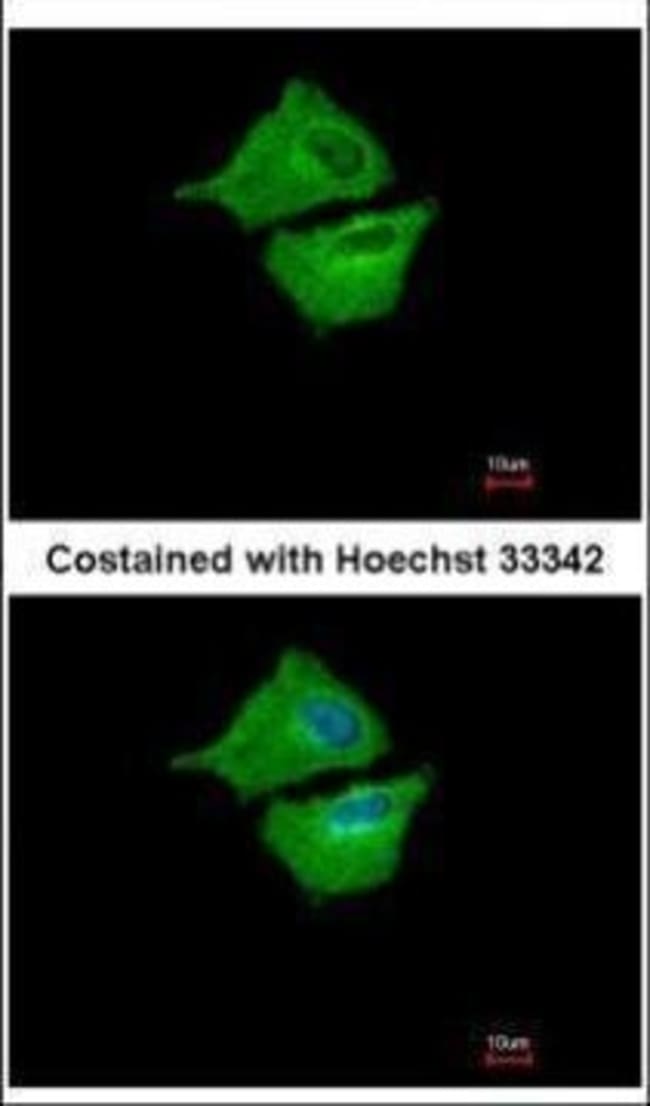 Recommended positive controls: A549, HepG2, HCT116. Predicted reactivity: Mouse (100%), Rat (100%), Xenopus laevis (99%), Chicken (100%), Bovine (100%). Store product as a concentrated solution. Centrifuge briefly prior to opening the vial.