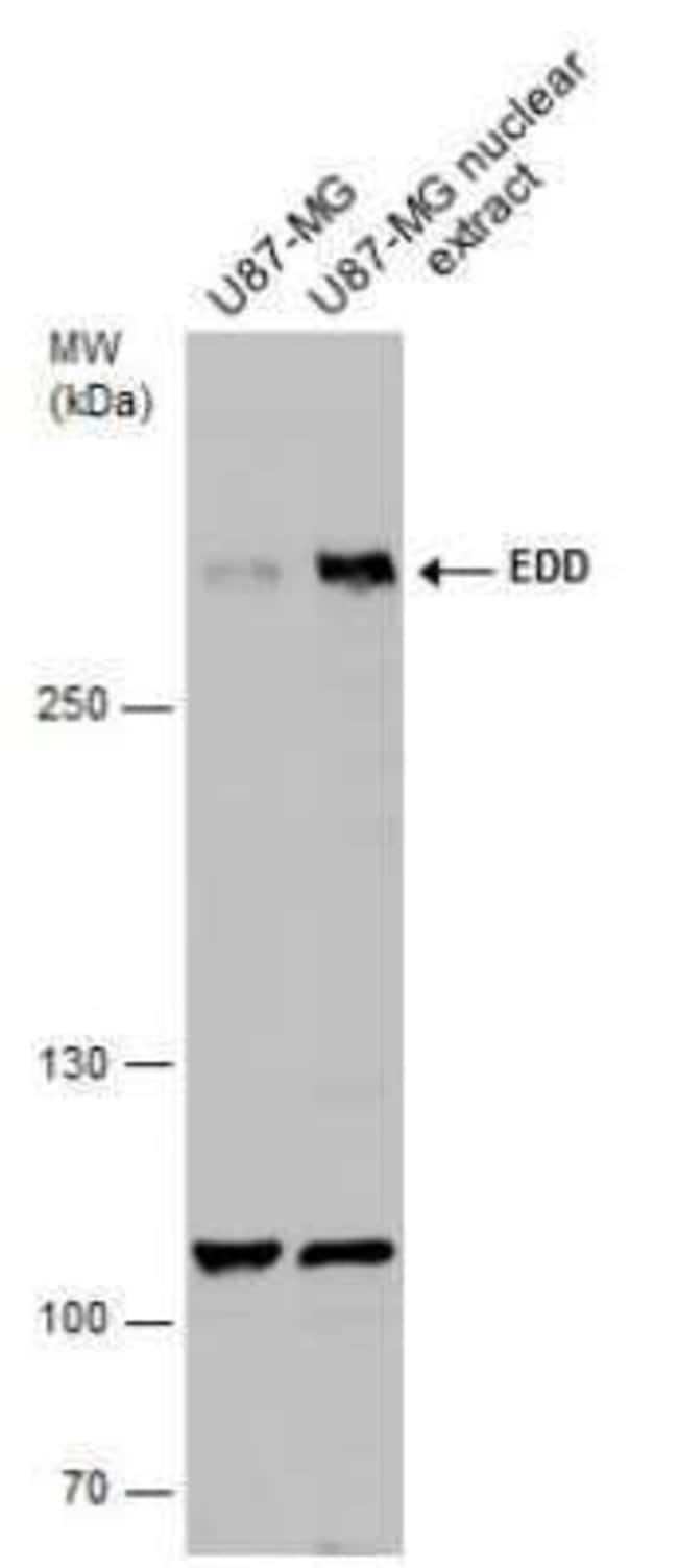UBR5/EDD Polyclonal antibody specifically detects UBR5/EDD in Human samples. It is validated for Western Blot, ImmunofluorescenceSpecifications
