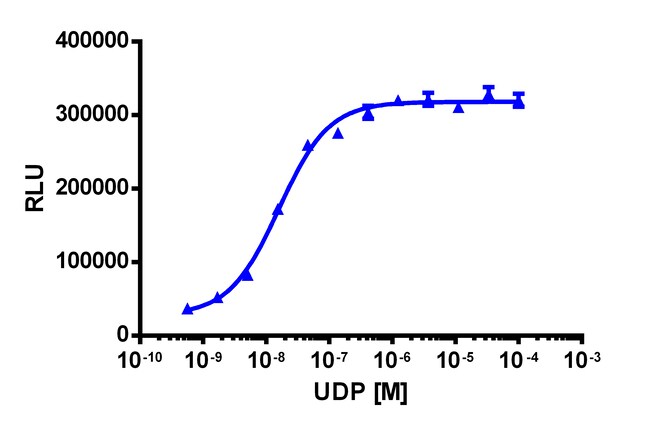 Uridine 5'-(trihydrogen diphosphate) is a uracil nucleoside diphosphate that is an important agent in glycogenesis in liver and muscles. UDP is a potent agonist of the P2Y purinoceptor. Provided as 10 mg of dry powder. These highly purified, pre-validated control ligands have been used to qualify our InCELL Hunter, PathHunter and cAMP Hunter cell lines as well as our Assay Ready Kits. Ligands are conveniently supplied with a recommended reconstitution buffer. For detailed information and product-specific datasheet, visit www.discoverx.com/ligands.