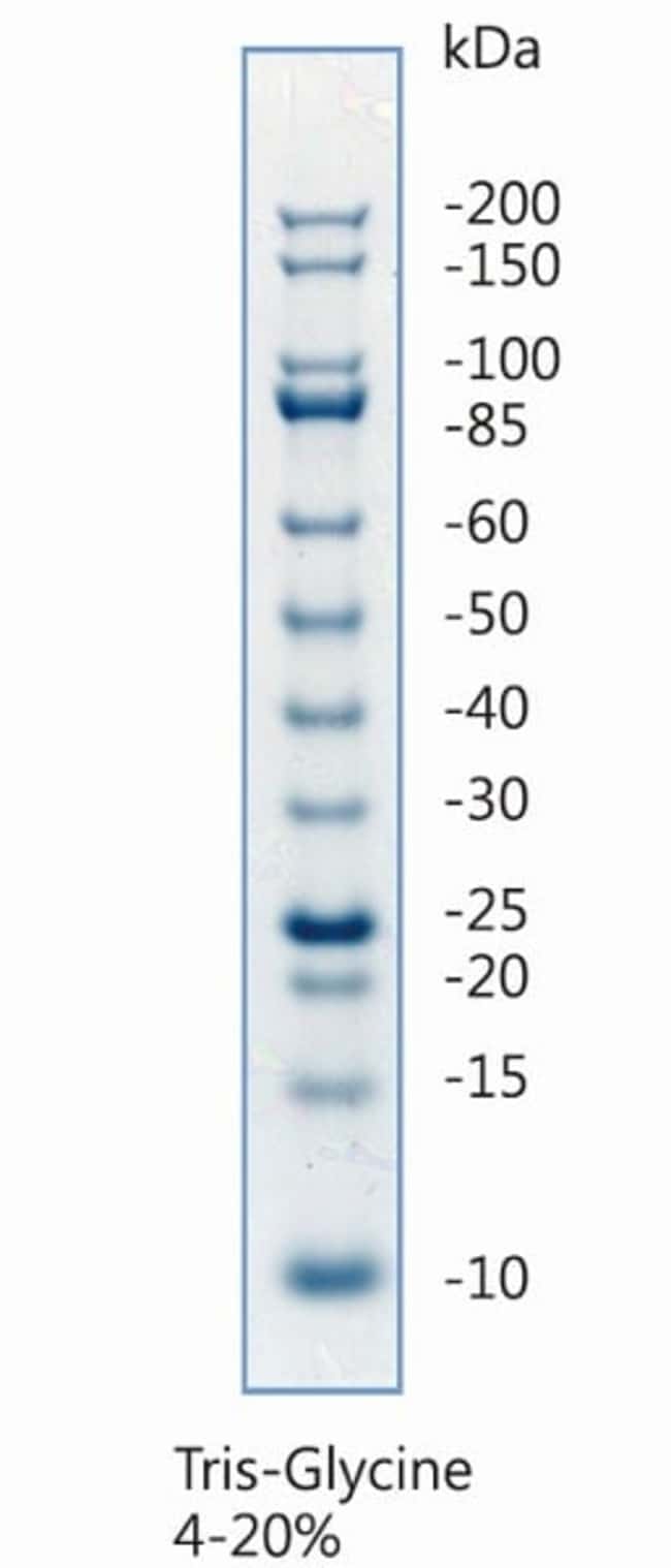 Unstained Protein Ladder ab234618 contains 12 unstained recombinant proteins covering a wide range of molecular weights from 10-200 kDa.