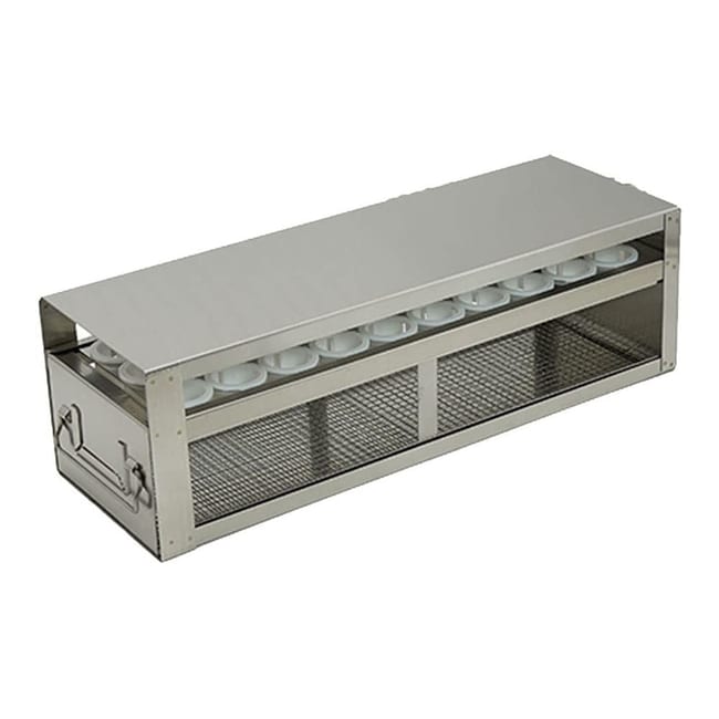 For 50ml Centrifuge Tubes Upright Freezer Drawer Rack stores 50 ml Centrifuge Tubes and features 1 drawer for storage up to 30 tubes. These Upright Freezer Drawer Racks are specifically designed to provide an ideal alternative for storing large quantities of samples in centrifuge tubes. Constructed of corrosion resistant stainless steel, these freezer racks include handles and identification card holders. Drawer racks facilitate easy access of samples without having to remove the whole rack from the freezer. Dimensions (DxWxH): 16 11/16 x 4 15/16 x 5 1/2 inches (424 x 126 x 140mm)Capacity: 30 Tubes *Lock device is ordered separately.