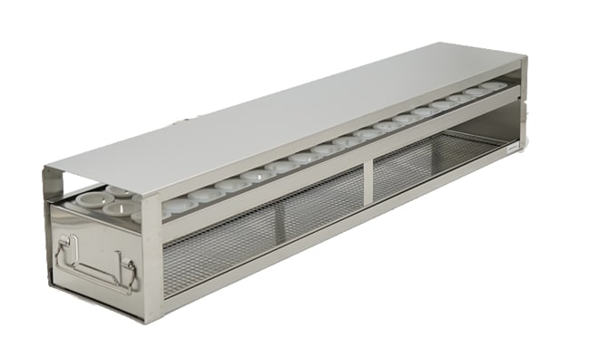 For 50ml Centrifuge Tubes Upright Freezer Drawer Rack stores 50 ml Centrifuge Tubes and features 1 drawer for storage up to 51 tubes. These Upright Freezer Drawer Racks are specifically designed to provide an ideal alternative for storing large quantities of samples in centrifuge tubes. Constructed of corrosion resistant stainless steel, these freezer racks include handles and identification card holders. Drawer racks facilitate easy access of samples without having to remove the whole rack from the freezer. Dimensions (DxWxH): 26 15/16 x 4 15/16 x 5 1/2 inches (685 x 126 x 140mm)Capacity: 51 Tubes *Lock device is ordered separately.