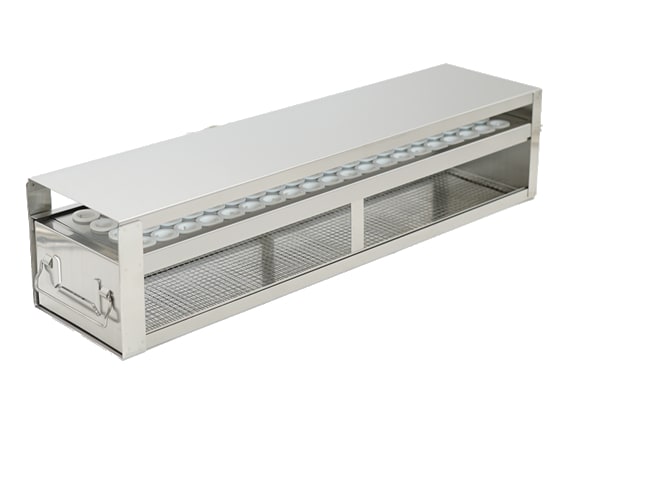For 15ml Centrifuge Tubes Upright Freezer Drawer Rack stores 15 ml Centrifuge Tubes and features 1 drawer for storage up to 80 tubes. These Upright Freezer Drawer Racks are specifically designed to provide an ideal alternative for storing large quantities of samples in centrifuge tubes. Constructed of corrosion resistant stainless steel, these freezer racks include handles and identification card holders. Drawer racks facilitate easy access of samples without having to remove the whole rack from the freezer. Dimensions (DxWxH): 22 3/16 x 5 1/2 x 4 15/16 inches (564 x 140 x 126mm)Capacity: 80 Tubes