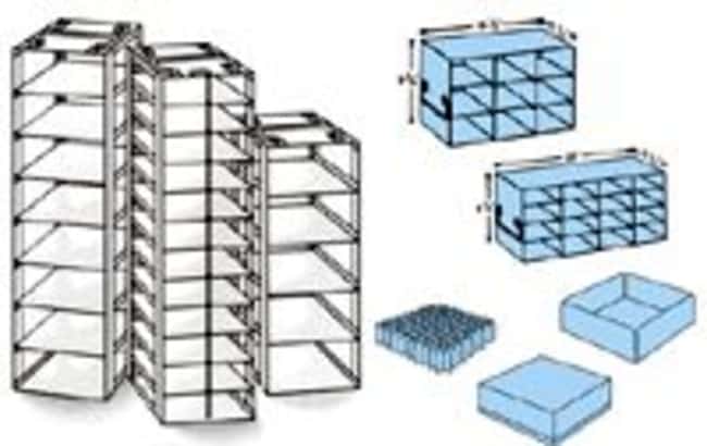 Convenient storage system for 1.5ml - 2.0ml micro-tubes and 1.2ml - 2.0ml cryogenic vials. Stainless steel freezer racks are available for this upright freeze storage system. Racks include stainless steel handles and accommodate 2 inch high cardboard and metal storage boxes.