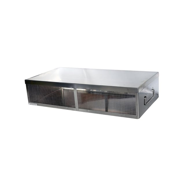 For Mixed Use Storage Bins Our Freezer Racks are constructed of high-quality, corrosion resistant stainless steel. Bin Style Organizer Freezer Racks provide a systematic cold storage solution to accommodate nearly any tube, bottle, box, vessel, and more. These freezer racks are perfect for cold rooms, -20C freezers and ultra-low temp freezers, and come complete with lids for added security and see through, wire mesh, sides for easy accessibility. Dimensions (DxWxH): 26 3/4 x 11 x 8 7/8 inches (680 x 279 x 225mm)Compartment Dimensions l x h x w: 26 5/16 x 8 3/4 x 10 11/16 inch (668 x 223 x 272mm)