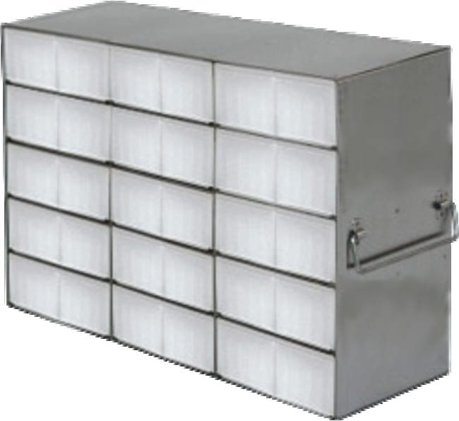 For 50-Cell 1.5 mL Storage Boxes The UFM-3615 Upright Freezer Racks are designed for storage of 50-Cell 1.5ml Microtube Boxes and feature a 3 Boxes High x 6 Boxes Deep configuration. These upright freezer racks include handles, are constructed of corrosion resistant stainless steel and offer convenient storage of samples in an organized format. Each rack compartment holds two 50 Cell 1.5ml Microtube Storage Boxes. Microtube boxes are not included with purchase. Security devices are available for each rack though ordered separately. Dimensions (DxWxH): 19 3/16 x 5 7/8 x 12 5/8 inches (488 x 149 x 321mm)Compartment Dimensions: 6 1/8 x 5 13/16 x 2 5/16 inches (156 x 147 x 57.6mm)