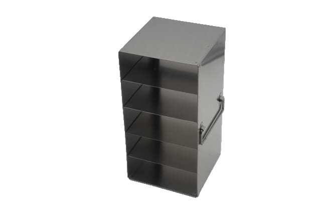 For 50-cell 0.5mL Storage Boxes The UFM-1505 Upright Freezer Racks are designed for storage of 50-Cell 0.5ml Microtube Boxes and feature a 5 Boxes High x 2 Boxes Deep configuration. These upright freezer racks include handles, are constructed of corrosion resistant stainless steel and offer convenient storage of samples in an organized format. Each rack compartment holds two 50 Cell 0.5ml Microtube Storage Boxes. Microtube boxes are not included with purchase. Security devices are available for each rack though ordered separately. Dimensions (DxWxH): 6 x 5 1/2 x 11 inches (153 x 140 x 280mm)Compartment Dimensions: 5 3/8 x 5 7/16 x 2 3/16 inches (137 x 138 x 55mm)