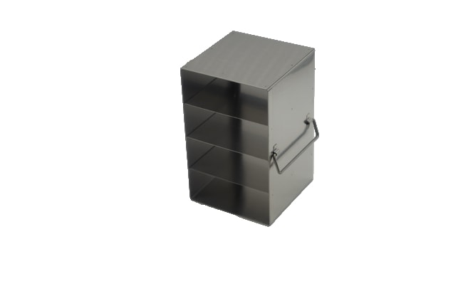 For 50-cell 0.5mL Storage Boxes Freezer Storage Racks are constructed of high-quality, corrosion resistant stainless steel. Durable stainless steel freezer racks facilitate organization and maximize valuable storage space.. Handles at both ends accommodate freezers with right or left handed doors. Upright Freezer Racks for 50-Cell 0.5ml Microtube Storage Boxes. Each rack compartment holds two 50 Cell 0.5ml Microtube Storage Boxes. Our freezer racks have been configured to fit all major ultra low (-80°) freezers on the market; racks are designed for ultra low upright freezers. Features: Holds 50-Cell 0.5ml Microtube Storage Boxes Constructed of corrosion resistant stainless steel Sturdy handle design Dimensions (DxWxH): 6 x 5 1/2 x 8 13/16 inches (153 x 140 x 224mm)Compartment Dimensions: 5 3/8 x 5 7/16 x 2 3/16 inches (137 x 138 x 55mm)