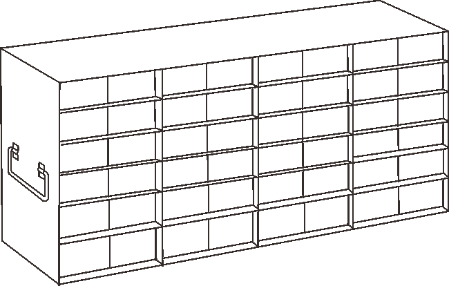 For 50-Cell 0.5mL Storage Boxes The UFM-4605 Upright Freezer Racks are designed for storage of 50-Cell 0.5ml Microtube Boxes and feature a 6 Boxes High x 8 Boxes Deep configuration. These upright freezer racks include handles, are constructed of corrosion resistant stainless steel and offer convenient storage of samples in an organized format. Each rack compartment holds two 50 Cell 0.5ml Microtube Storage Boxes. Microtube boxes are not included with purchase. Security devices are available for each rack though ordered separately. Dimensions (DxWxH): 22 3/8 x 5 1/2 x 12 5/8 inches (569 x 140 x 321mm)Compartment Dimensions: 5 3/8 x 5 7/16 x 2 3/16 inches (137 x 138 x 55mm)