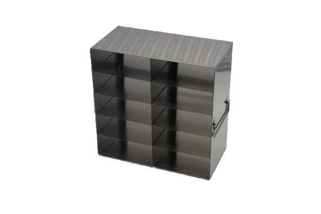 For 50-Cell 0.5mL Storage Boxes The UFM-2505 Upright Freezer Racks are designed for storage of 50-Cell 0.5ml Microtube Boxes and feature a 5 Boxes High x 2 Boxes Deep configuration. These upright freezer racks include handles, are constructed of corrosion resistant stainless steel and offer convenient storage of samples in an organized format. Each rack compartment holds two 50 Cell 0.5ml Microtube Storage Boxes. Microtube boxes are not included with purchase. Security devices are available for each rack though ordered separately. Dimensions (DxWxH): 11 1/2 x 5 1/2 x 11 inches (292 x 140 x 280mm)Compartment Dimensions: 5 3/8 x 5 7/16 x 2 3/16 inches (137 x 138 x 55mm)