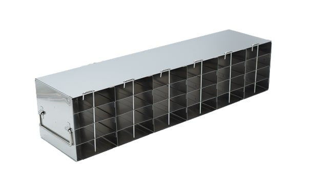 For Speciality Tube Racks (Matrix, Micronic, Fluidx, Abgene)- H: 15/16″- 1 1/8″ (23.8-28.45mm) Our Freezer Storage Racks are constructed of high-quality, corrosion resistant stainless steel. Handles at both ends accommodate freezers with right or left handed doors. Our freezer racks have been configured to fit all major ultra low (-80°) freezers on the market; racks are designed for ultra low upright freezers. Removable clip can be adjusted so that the rack can hold both standard 6" and 4" boxes.Constructed of corrosion resistant stainless steel. Features: Modifiable Includes Handles Constructed of corrosion resistant stainless steel Dimensions (DxWxH): 21 3/4 x 5 7/16 x 5 1/16 inches (552 x 138 x 129mm)Compartment Dimensions: 3 7/16 x 5 7/16 x 1 3/16 inches (88 x 130 x 30mm)