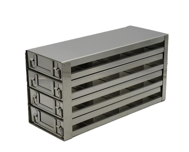 For Speciality Tube Racks (Micronic,Fluidx, Abgene )- H: 1 1/4″-1 1/2″(31.7-38.7mm) Our Freezer Storage Racks are constructed of high-quality, corrosion resistant stainless steel. Durable stainless steel freezer racks facilitate organization and maximize valuable storage space.. Handles at both ends accommodate freezers with right or left handed doors. Racks are for 96-well & 384-well Microtiter Plates. Our freezer racks have been configured to fit all major ultra low (-80°) freezers on the market; racks are designed for ultra low upright freezers. Features: Racks are for 96-well & 384-well Microtiter Plates Constructed of corrosion resistant stainless steel Sturdy handle design Dimensions L x H x W: 14 7/16 x 7 3/8 x 5 7/16inch (366 x 188 x 138mm)Compartment l x h x w: 3 7/16 x 1 5/8 x 5 1/8 inch (88 x 41.4 x 130mm)