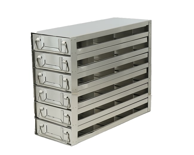 For Speciality Tube Racks (Micronic,Fluidx, Abgene )- H: 1 1/4″-1 1/2″(31.7-38.7mm) Our Freezer Storage Racks are constructed of high-quality, corrosion resistant stainless steel. Durable stainless steel freezer racks facilitate organization and maximize valuable storage space.. Handles at both ends accommodate freezers with right or left handed doors. Racks are for 96-well & 384-well Microtiter Plates. Our freezer racks have been configured to fit all major ultra low (-80°) freezers on the market; racks are designed for ultra low upright freezers. Features: Racks are for 96-well & 384-well Microtiter Plates Constructed of corrosion resistant stainless steel Sturdy handle design Dimensions L x H x W: 14 7/16 x 11 1/16 x 5 7/16inch (366 x 281 x 138mm)Compartment l x h x w: 3 7/16 x 1 5/8 x 5 1/8 inch (88 x 41.4 x 130mm)