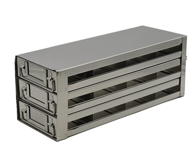 For Speciality Tube Racks (Micronic,Fluidx, Abgene )- H: 1 1/4″-1 1/2″(31.7-38.7mm) Our Freezer Storage Racks are constructed of high-quality, corrosion resistant stainless steel. Durable stainless steel freezer racks facilitate organization and maximize valuable storage space.. Handles at both ends accommodate freezers with right or left handed doors. Racks are for 96-well & 384-well Microtiter Plates. Our freezer racks have been configured to fit all major ultra low (-80°) freezers on the market; racks are designed for ultra low upright freezers. Features: Racks are for 96-well & 384-well Microtiter Plates Constructed of corrosion resistant stainless steel Sturdy handle design Dimensions L x H x W: 14 7/16 x 5 9/16 x 5 7/16inch (366 x 142 x 138mm)Compartment l x h x w: 3 7/16 x 1 5/8 x 5 1/8 inch (88 x 41.4 x 130mm)