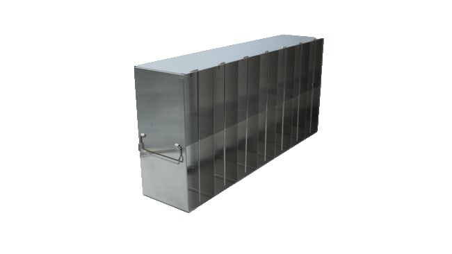 For 96-well & 384- Well Microtiter Plates Upright Freezer Racks are designed for storage of 96 & 384-Well Microtiter Plates and can store up to 80 plates. These freezer racks are constructed of corrosion resistant stainless steel, include handles, and offer convenient storage of microtiter plates in your laboratory freezer. Locking rods are also included for added security. Microtiter plates are not included with purchase. Plate Capacity: 168 with lids 196 without lids Dimensions (DxWxH): 26 1/8 x 5 1/2 x 16 inches (664 x 140 x 407mm)Compartment Dimensions: 3 9/16 x 5 3/16 x 7 15/16 inches (91 x 130.5 x 202mm)