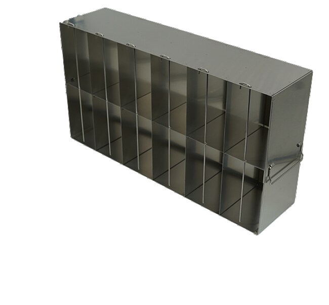 For 96-well & 384- Well Microtiter Plates Upright Freezer Racks are designed for storage of 96 & 384-Well Microtiter Plates and can store up to 80 plates. These freezer racks are constructed of corrosion resistant stainless steel, include handles, and offer convenient storage of microtiter plates in your laboratory freezer. Locking rods are also included for added security. Microtiter plates are not included with purchase. Plate Capacity: 144 with lids 168 without lids Dimensions (DxWxH): 22 1/2 x 5 1/2 x 16 inches (571 x 140 x 407mm)Compartment Dimensions: 3 9/16 x 5 3/16 x 7 15/16 inches (91 x 130.5 x 202mm)