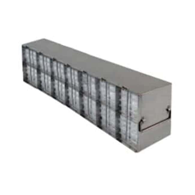 96-Well and 384-Well Microtiter Plates Upright Freezer Racks are designed for storage of 96 & 384-Well Microtiter Plates and can store up to 140 plates. These freezer racks are constructed of corrosion resistant stainless steel, include handles, and offer convenient storage of microtiter plates in your laboratory freezer. Locking rods are also included for added security. Microtiter plates are not included with purchase. Plate Capacity: 112 with lids 140 without lids Dimensions (DxWxH): 26 1/8 x 5 1/2 x 11 inches (664 x 140 x 280mm)Compartment Dimensions: 3 9/16 x 5 3/16 x 5 7/16 inches (91 x 130.5 x 138mm) *Lock device is ordered separately.